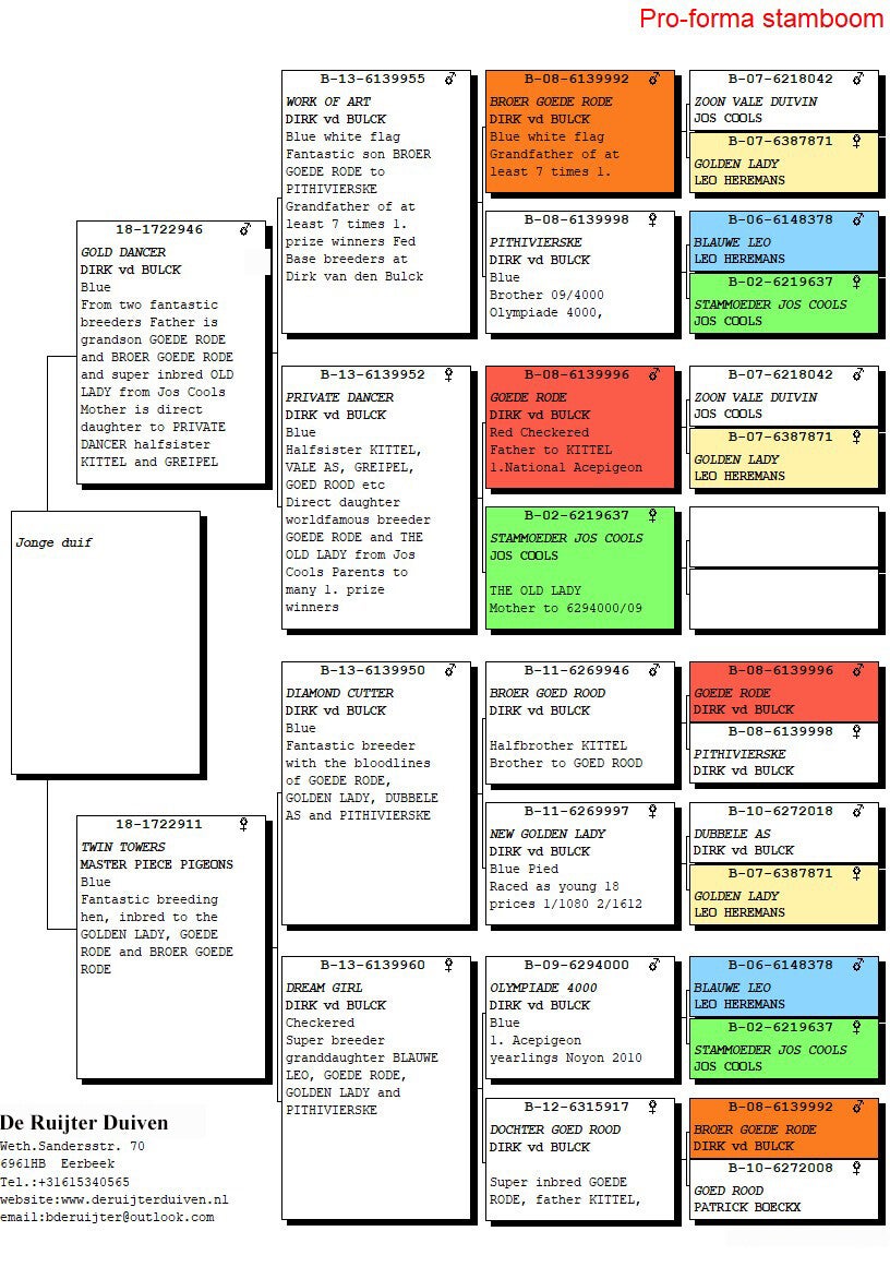 Super breedingpair, OLYMPIC PLEASURE is strong inbred to OLYMPIC ROSITA, mother to KITTEL, ILLUSION is direct daughter DANCING QUEEN, she is from unique pairing GOEDE RODE x OLD LADY JOS COOLS, only a few in the world are bred like her.